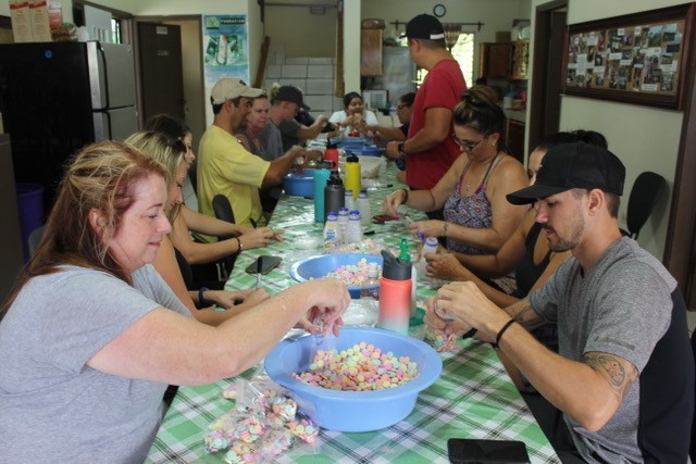 We had a meeting and went over some house rules and then were told what we had to get done that day to prepare for the week. I was put in charge of the giveaway bags. We packed up cloth diapers, shoes, socks, and hats. I also brought stickers and bubbles to play with the kids. Others were split off into preparing baking soda and salt (toothpaste) and beans as others were packing up medicines like Tums, Tylenol and vitamins.