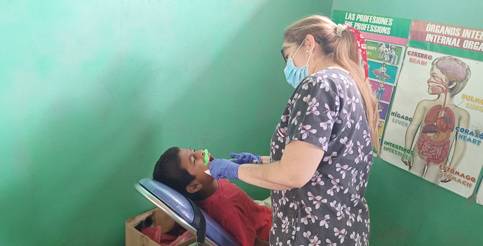 Today was a very busy day in the community of Planes de Picacho. About an hour and twenty-minute drive from the Alfredo House where we are staying, Planes de Picacho is a farming community surrounded by rolling hills and many pine trees. When the Friends of Barnabas bus pulled up to outside the village school, we were joyfully greeted by two smiling children shaking our hands saying "Buenos Dias!" The school quickly became our clinic as we all jumped in to set up the space; school desks were removed and replaced by long tables where medicines, stethoscopes, blood pressure cuffs, and stickers were scattered ready for use on our patients.