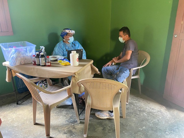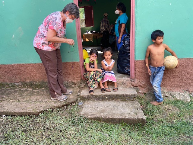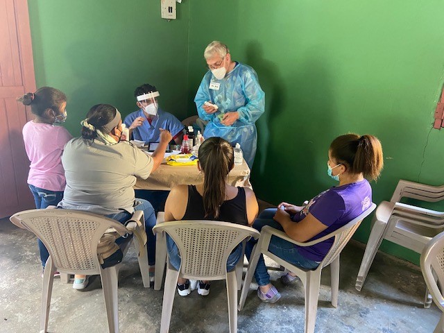 After a delicious breakfast of baleadas, we were on our way to the community of La Aguita near Peña Blanca, a very short bus ride away from Alfredo's House. Some of the staff are from La Aguita, they and are closely attached to this community. The population is about 600 people in 100 families. Homes generally have indoor latrines but no running water. Friends of Barnabas has been the only non-profit supporting the community for some time, and they have benefitted from the medicine box and a strong community leader, Nurse Costa. She who greeted us with a welcoming sign. The community members enthusiastically helped us unpack and one even lent us their home for the measuring and weighing station. Since this was our fifth day and fifth community setup, the team was up and running very quickly.