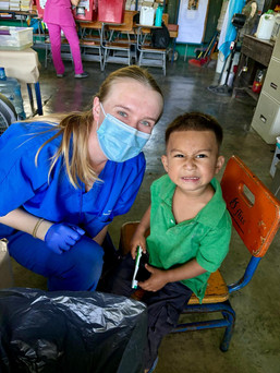 The dental clinic was full of activity as our three dentists tirelessly performed fillings, extractions, and cleanings. Additionally, numerous children received fluoride treatments as a preventive measure. Young Alan, showing exceptional helpfulness in packing up, was awarded a cross by Dr. Bo as a token of appreciation.